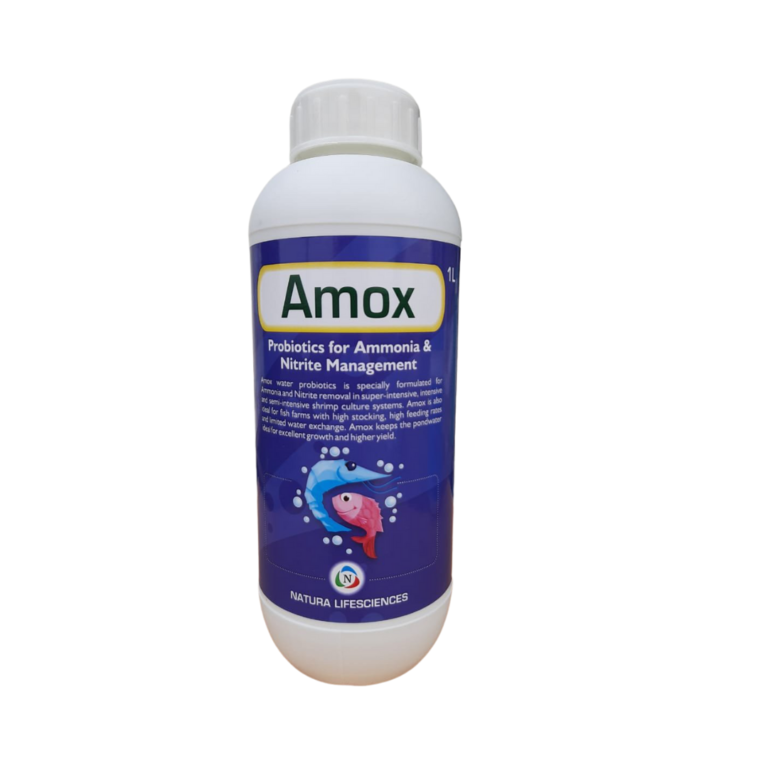 1 Litre / Acre mixed with sufficient quantity of pond water and applied through the Pond for every 7-10 days.