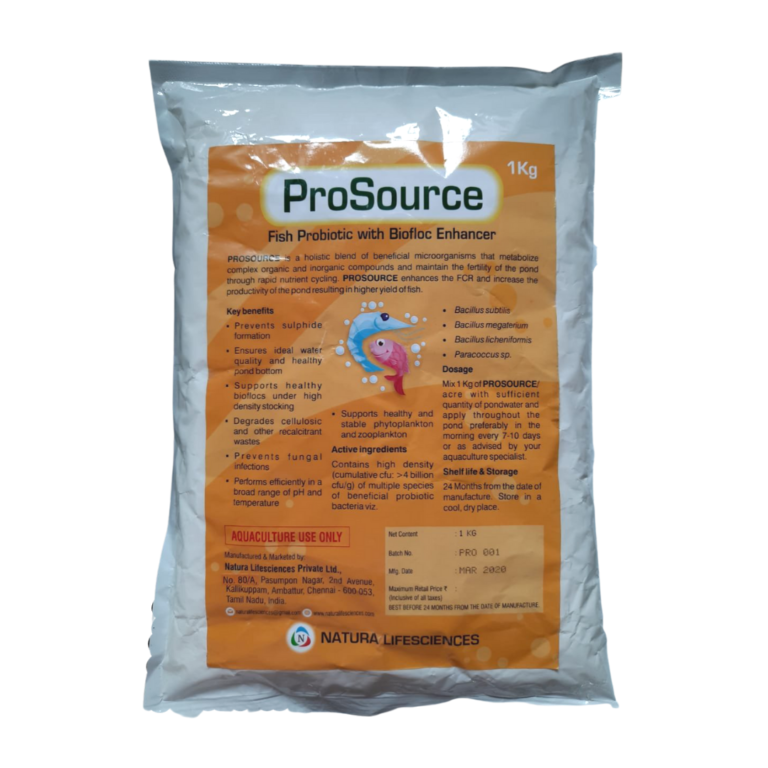 Mix 1 kg with sufficient quantity of pond water and apply throughout the pond preferably in the morning every 7-10 days or advised by Aquaculture Specialist